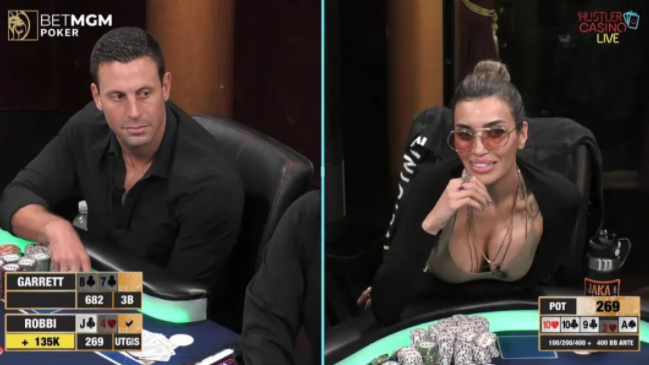 2022年9月29日,扑克圈史上最具争议的牌局之一,在高额常规节目《Hustler Casino Live》发生了——娱乐玩家Robbie Jade Lew用J4o手牌,毫不合理地跟了盖哥Garrett Adelstein的全推,赢下269,000刀大底池。