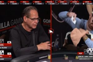 上周五晚的Hustler Casino Live直播中,上演了一手超过90万美元的巨额底池争夺战——两位玩家在河牌同时击中自己梦寐以求的牌,结果其中一位的“美梦”瞬间变成噩梦。 1…