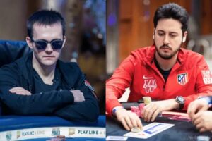 在高手云集的现场高额锦标赛中,我们不太能看到最小3-bet。这手牌发生于英国举办的$25500超级豪客赛中。白俄罗斯牌手Mikita Badziakouski(下图左),在对抗西班…