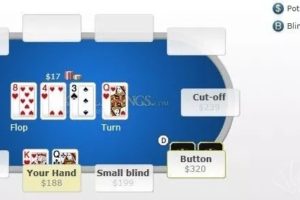 德州扑克技巧教学:在转牌中顶对带同花听牌,没有位置的你该下注还是过牌?