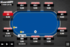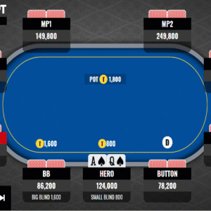 1、牌局背景 无限德州扑克锦标赛,盲注级别:800/1600,玩家筹码量如图: 翻前,MP1玩家率先加注到4800,MP2玩家3-bet到11200,后面三位玩家弃牌。现在轮到在小…