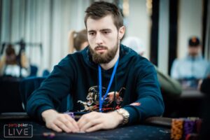 这手牌的对决双方,分别是波兰线上职业玩家Wiktor “limless” Malinowski(下图),和名不见经传的 “crazytrader…