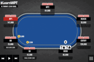 1、牌局背景 无限注德州扑克锦标赛,盲注级别:2500/5000,玩家筹码量如下图: 翻前,枪口位(也是MP1位)率先加注至15000(3BB),后面两人弃牌,CO位玩家跟注。你在…