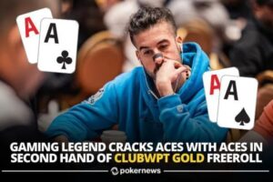今天这手牌发生在上周五的$5,000,000 ClubWPT Gold免费邀请赛上。 一位在电竞游戏界拥有“Ace”绰号的前Halo(《光环》,一款第一人称射击类游戏)冠军Aaro…
