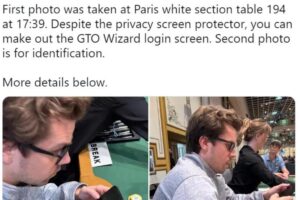 上周四,一位叫James Chen的扑克玩家,在WSOP赛场上拍到有选手使用手机登录GTOWizard解牌软件,并将照片发布到了社交媒体上。 拍到一个人在WSOP 1K神秘百万赛A…