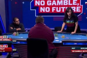 今天要分享的这手牌,发生在最新一集的《No Gamble No Future》节目中,Nik Airball在翻前与Jennifer Tilly“大打出手”,底池高达$333,80…